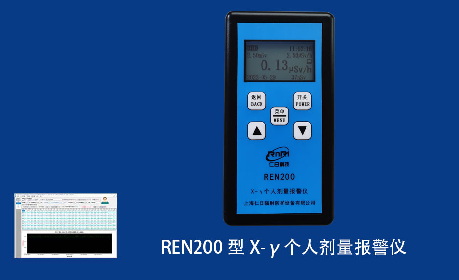 REN200 放射性個人報警儀 REN200型X、γ個人劑量報警儀(又叫X、γ輻射個人劑量當量HP(10)監測儀)內置高靈敏度蓋格計數管為探測器,主要用來監測各種放射性工作場所中個人的X、γ以及硬β射線的輻射,具有響應快,測量范圍寬的特點。能顯示工作場所的劑量當量率和累積劑量,更換電池時,日期及累積數據能永久保存?蛇x配RenRiPersonal個人劑量管理軟件,該軟件可存儲多個人的歷史數據,能記錄日累積、月累積、年累積、輻照時長、計算平均劑量率、扣除或不扣除本底輻射,且以文字和圖譜的方式展現數據。廣泛應用于核電站、加速器、鋼鐵、化工、同位素應用、醫院、工業X、γ無損探傷、放射醫療、鈷源治療、γ輻照、放射性實驗室、核設施周